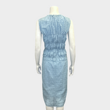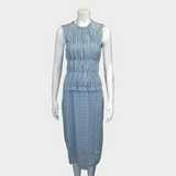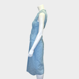 Nina Ricci light blue eyelet cotton ruched mid-length dress