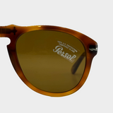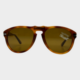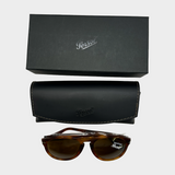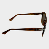 Persol men's light brown mottled tortoiseshell pilot shaped sunglasses