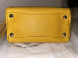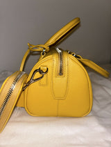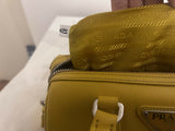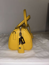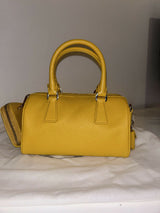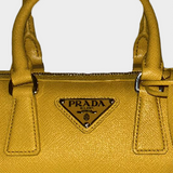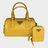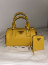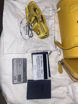Prada yellow saffiano leather bauletto handbag with shoulder strap and pouch