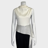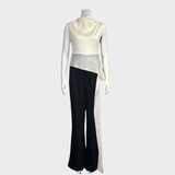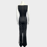 Roland Mouret black and white textured silk high-neck sleeveless draped jumpsuit