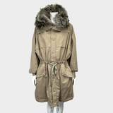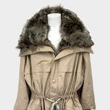 Stella McCartney women's camel cotton and faux fur parka coat with hood