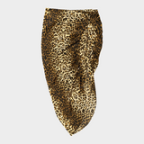 Veronica Beard brown and beige ruched animal print silk midi skirt